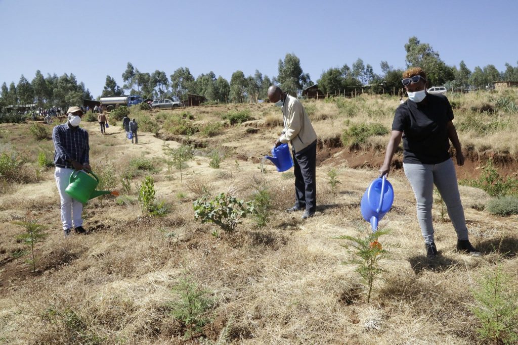 የውሃ መስኖና ኢነርጂ ሚኒስቴር እና የሚኒስቴር መስሪያ ቤቱ ተጠሪ ተቋማት የስራ ኃላፊዎች እና ሰራተኞች ባለፈው ክረምት በአረንጓዴ አሻራ መርሃ-ግብር በኦሮሚያ ክልል ፊንፊኔ ዙሪያ ልዩ ዞን ልዩ ቦታው ደርባ ፊንጫ በሚባል አካባቢ የተከሏቸውን ችግኞች ውሃ አጠጥተዋል፡፡