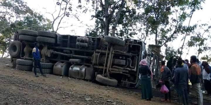የዞኑ ፖሊስ መምሪያ የኮሙዩኒኬሽን ኃላፊ ሳጅን አህመድ ጠቀሳ እንዳታወቁት አደጋው የተፈጠረው ጠጠር የጫነ ሲኖትራክ በላዩ ላይ ሰዎችን ጭኖ ሲጓዝ በመገልበጡ ነው፡፡