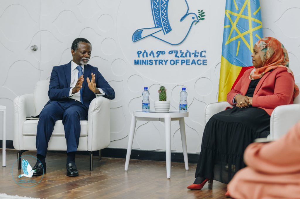የአዲስ አበባ ፣ ጥር 28 ፣ 2013 (ኤፍ ቢ ሲ) የሰላም ሚኒስትር ወይዘሮ ሙፈሪሃት ካሚል ከተባበሩት መንግስታት ድርጅት ዋና ጸሀፊ ልዩ መልዕክተኛ ፓርፌይት ኦናንጋ-አንያንጋ ጋር ተወያዩ፡፡