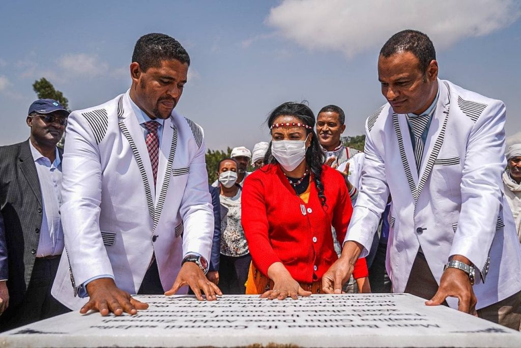 አዲስ አበባ ፣ የካቲት 2 ፣ 2013 (ኤፍ.ቢ.ሲ) ቀዳማዊት እመቤት ዝናሽ ታያቸው በኦሮሚያ ክልል ምዕራብ ሸዋ ዞን አምቦ ወረዳ ለሚገነባው ለኢፋ ቦሩ ሎሬት ጸጋዬ ገብረመድህን 2ኛ ደረጃ ትምህርት ቤት የመሰረት ድንጋይ አኖሩ።