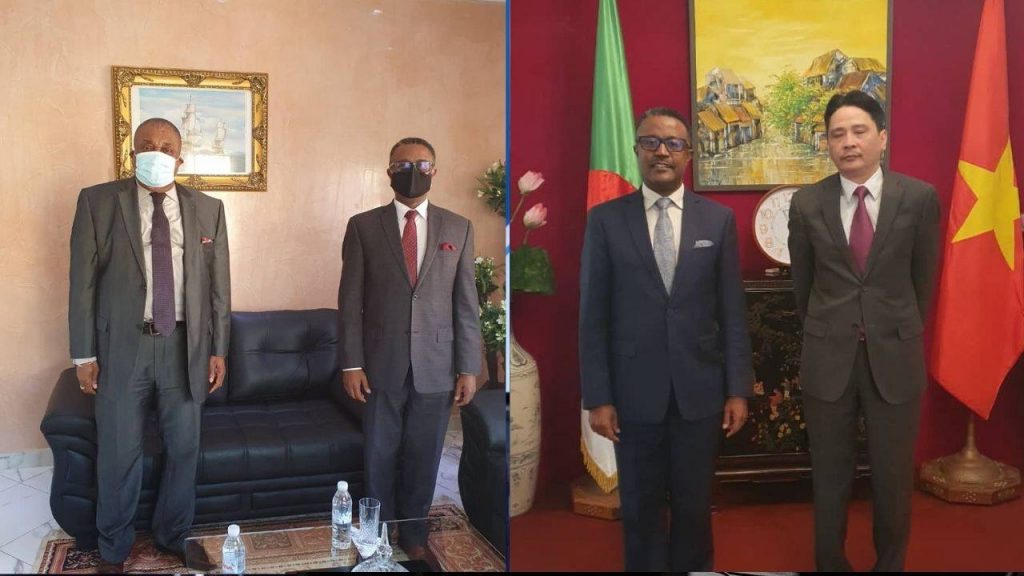አዲስ አበባ ፣ የካቲት 10 ፣ 2013 (ኤፍ ቢ ሲ) አምባሳደር ነብያት ጌታቸው በአልጀሪያ የቬትናም አምባሳደር አንጉየን ታን ቪን እንዲሁም በአልጄሪያ የኮንጎ ሪፐብሊክ አምባሳደርና የአፍሪካ አምባሳደሮች ዲን ጃን ፔ ሉዌቦ ጋር በወቅታዊ የሀገሪቱ ጉዳዮች ዙሪያ