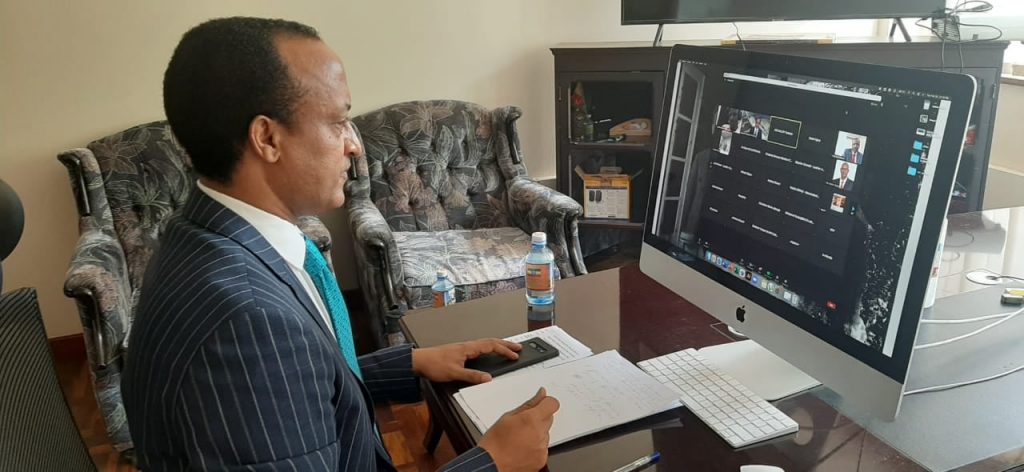 በኬንያ የኢትዮጵያ ኤምባሲ ባዘጋጀው የበይነ መረብ የቢዝነስ ውይይት ላይ በኢፌዲሪ ውጭ ጉዳይ ሚኒስቴር፣ የውጭ ንግድና ቱሪዝም ማስፋፊያ ዳይሬክተር ጄኔራል አምባሳደር ረጋሣ ከፋለ በመድረኩ ኢትዮጵያ ውስጥ ያሉትን የኢንቨስትመንት ዕድሎች በተመለከተ ሰፊ ማብራሪያ ሠጥተዋል፡፡