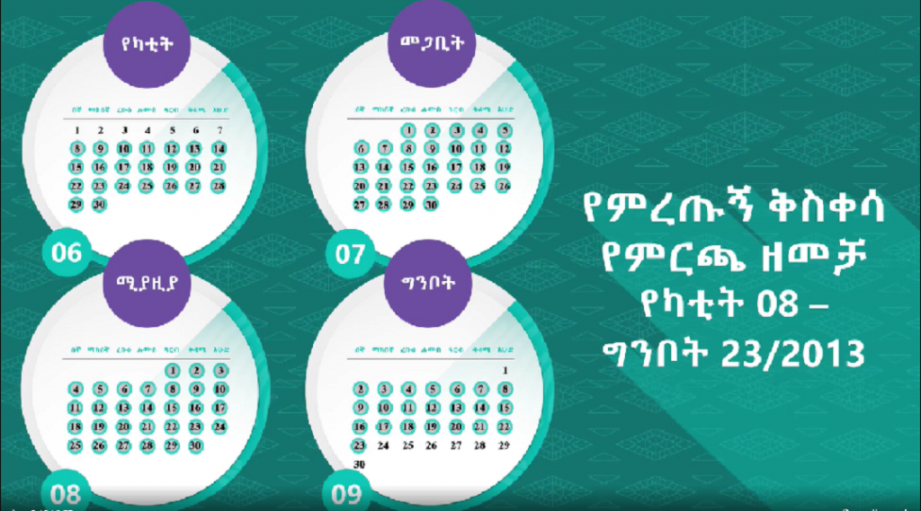 በቦርዱ የጊዜ ሰሌዳ መሰረት የፖለቲካ ፓርቲዎቹ የምረጡኝ ቅስቀሳቸውን ከየካቲት 8 ቀን 2013 ዓ.ም ጀምሮ እያካሄዱ ሲሆን ዘመቻው እስከ ግንቦት 23 ቀን 2013 ዓ.ም ይቀጥላል።