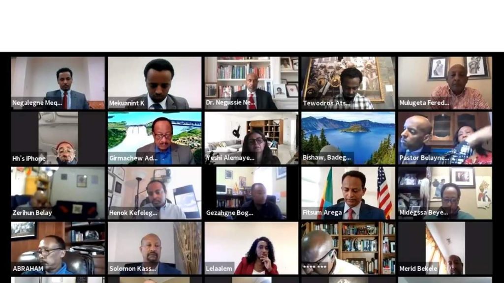የኢፌዴሪ የውሃ፣ መስኖና ኢነርጂ ሚኒስትር ዶክተር ኢንጂነር ስለሺ በቀለ በታላቁ የኢትዮጵያ ሕዳሴ ግድብ ወቅታዊ ጉዳዮች ዙሪያ በአሜሪካ ከ15 ስቴቶች ለተውጣጡ የዳያስፖራ ወገኖች ማብራሪያ ሰጥተዋል።