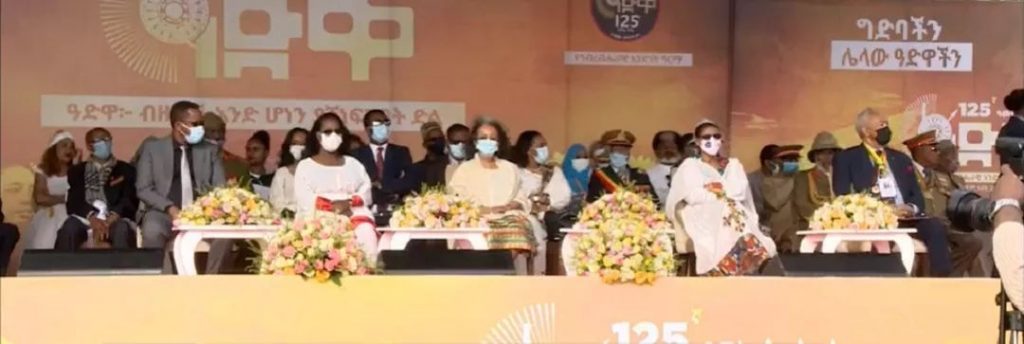 በበዓሉ ላይ የተገኙት የኢፌዴሪ ፕሬዚዳንት ሳህለወርቅ ዘውዴ የአበባ ጉንጉን አኑረዋል።