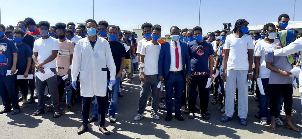 የውጭ ጉዳይ ሚኒስቴር ቆንስላ ጉዳዮች ዳይረክቶሬት ጄኔራል ተወካይ በቦሌ ዓለም አቀፍ አውሮፕላን ማረፊያ ተገኝተው ለተመላሾቹ አቀባበል አድርገውላቸዋል።
