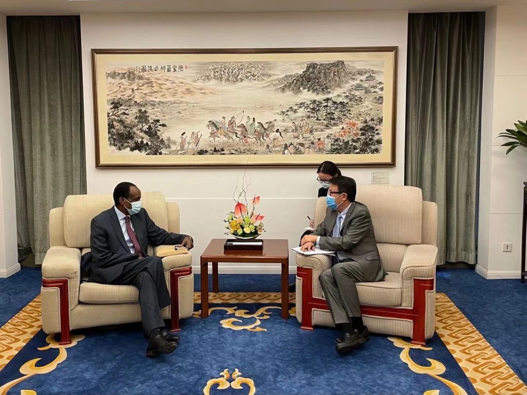አዲስ አበባ፣ የካቲት 24፣ 2013 (ኤፍ ቢ ሲ) በቻይና የኢትዮጵያ አምባሳደር ተሾመ ቶጋ በቻይና ውጭ ጉዳይ ሚኒስቴር ከአፍሪካ ጉዳዮች ዳይሬክተር ው ፔንግ ጋር መክረዋል።