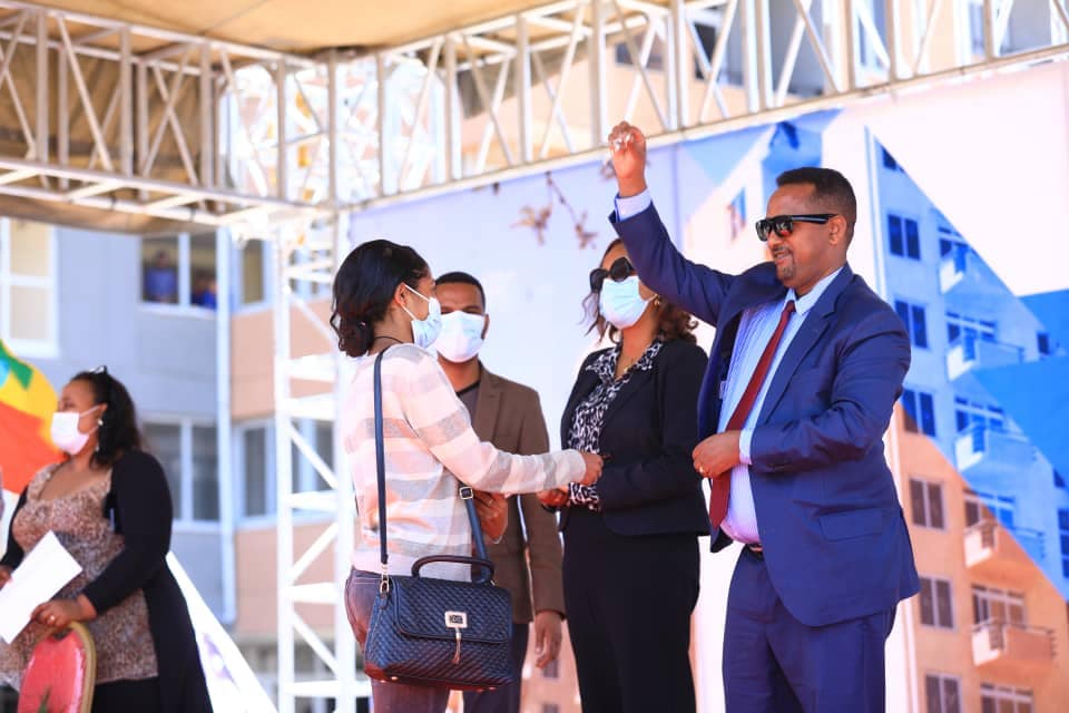 በምክትል ከንቲባ ማዕረግ የመንግስት አገልግሎት ሰጪ ተቋማት አስተባባሪ አቶ ጃንጥራር አባይ እና የአዲስ አበባ ከተማ የቤቶች ልማትና አስተዳደር ቢሮ ኃላፊ ዶክተር መስከረም ዘውዴ በሀያት 49 ማዞሪያ ሳይት በመገኘት የቤቶቹን ቁልፍ ለባለዕድለኞች አስረክበዋል ።