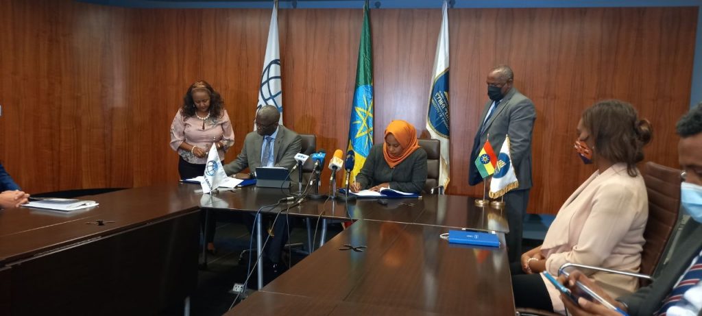 ስምምነቱን የገንዘብ ሚኒስትር ሚኒስትር ዲኤታ ወይዘሪት ያስሂን ወሀብራቢና በኢትዮጵያ የዓለም ባንክ ዳይሬከተር ኦስማን ዲዮን ተፈራርመውታል።