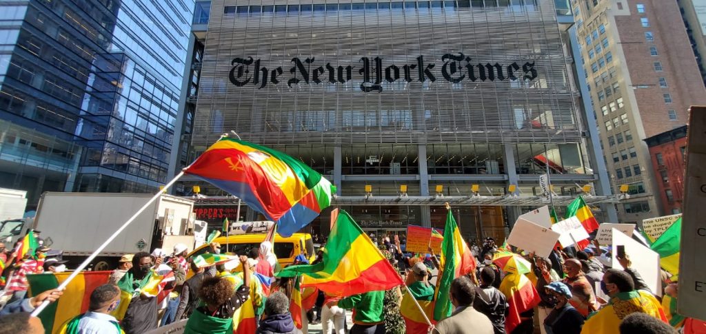 አዲስ አበባ ፣ መጋቢት 3 ፣ 2013 (ኤፍ ቢ ሲ) በአሜሪካ የተለያዩ ግዛቶች የሚኖሩ በሺዎች የሚቆጠሩ ኢትዮጵያውያንና ትውልደ ኢትዮጵያውያን በኒውዮርክ የመንግስታቱ ድርጅት ዋና ጽህፈት ቤት፣ በኒውዮርክ ታይምስ እና ሲ ኤን ኤን ቢሮዎች በመገኘት ሰላማዊ ሰልፍ አካሂደዋል፡፡