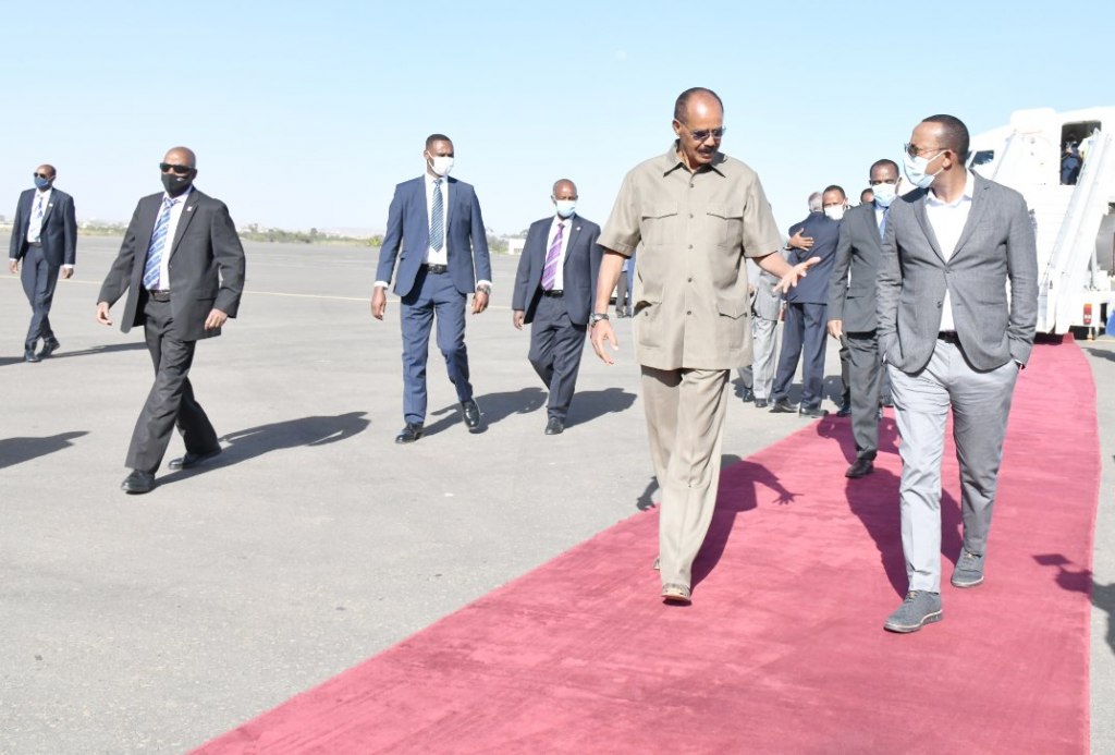 ጠቅላይ ሚኒስትር ዐቢይ እና የልዑካን ቡድናቸው አስመራ አውሮፕላን ማረፊያ ሲደርሱ በኤርትራው ፕሬዚዳንት ኢሳያስ አፈወርቂ ደማቅ አቀባበል እንደተደረገላቸው የኤርትራው የማስታወቂያ ሚኒስትር የማነ ገብረመስቀል በቲውተር ገጻቸው ላይ አስፍረዋል።