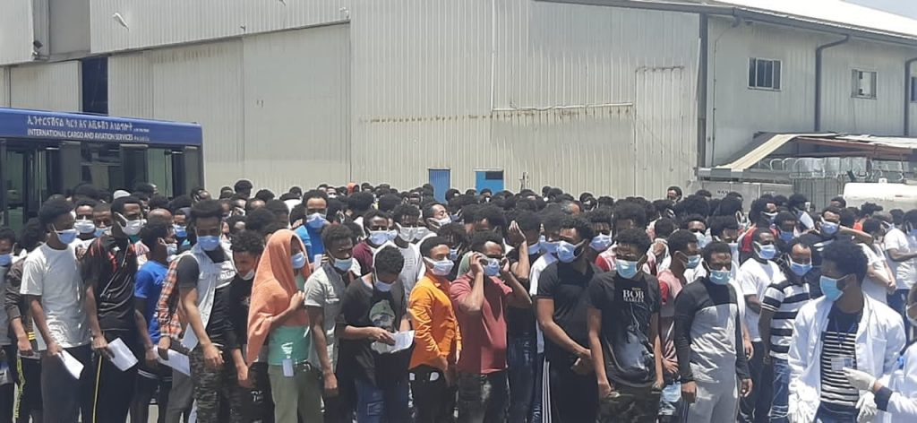 በውጭ ጉዳይ ሚኒስቴር የቆንስላ ጉዳዮች ዳይሬክቶሬት ጄኔራል ተወካይ በቦሌ ዓለም አቀፍ አውሮፕላን ማረፊያ ተገኝተው ለተመላሾቹ አቀባበል አድርገውላቸዋል።