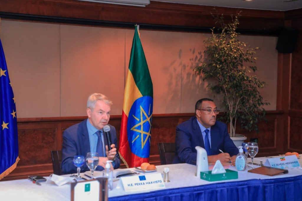 አዲስ አበባ ፣ ሚያዝያ 1 ፣ 2013 (ኤፍ ቢ ሲ) ምክትል ጠቅላይ ሚኒስትርና የውጭ ጉዳይ ሚኒስትር አቶ ደመቀ መኮንን በፊንላንድ የውጭ ጉዳይ ሚኒስትርና የአውሮፓ ህብረት ልዑክ መሪ ፔካ ሀቪስቶ ጋር ተወያይተዋል፡፡