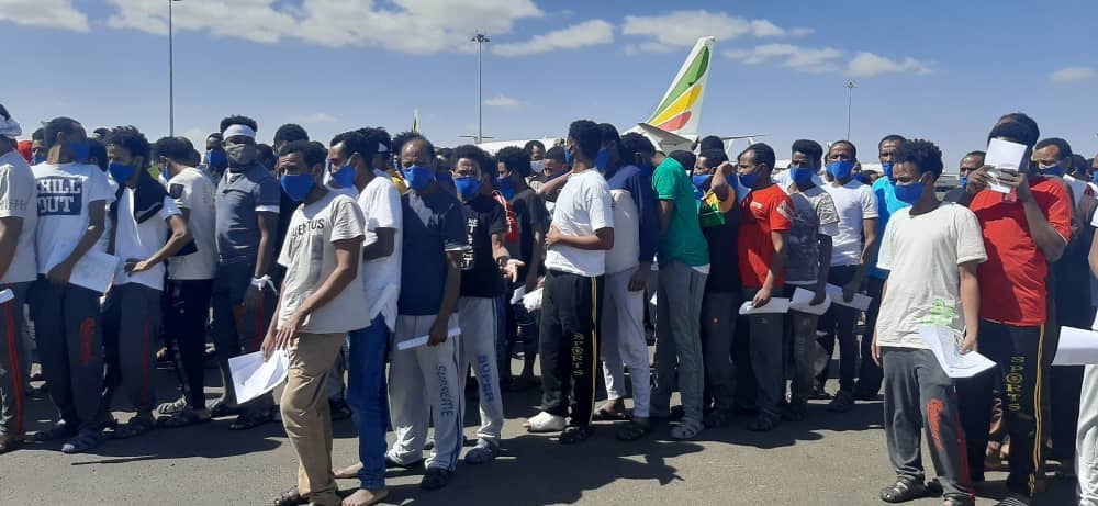 በወቅቱም የውጭ ጉዳይ ሚኒስቴር፣ የቆንስላ ጉዳዮች ዳይሬክቶሬት ጄኔራል ተወካይ በቦሌ ዓለም አቀፍ አውሮፕላን ማረፊያ ተገኝተው ለተመላሾቹ አቀባበል አድርገውላቸዋል።