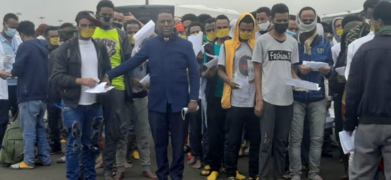 በው ጭ ጉዳይ ሚኒስቴር፣ የቆንስላ ጉዳዮች ዳይሬክቶሬት ጄኔራል ተወካይ በቦሌ ዓለም አቀፍ ኤርፖርት ተገኝተው ለተመላሾቹ አቀባበልማድረጋቸውን ከውጭ ጉዳይ ሚኒስቴር ቃል አቀባይ ጽህፈት ቤት ያገኘነው መረጃ ያመላክታል።