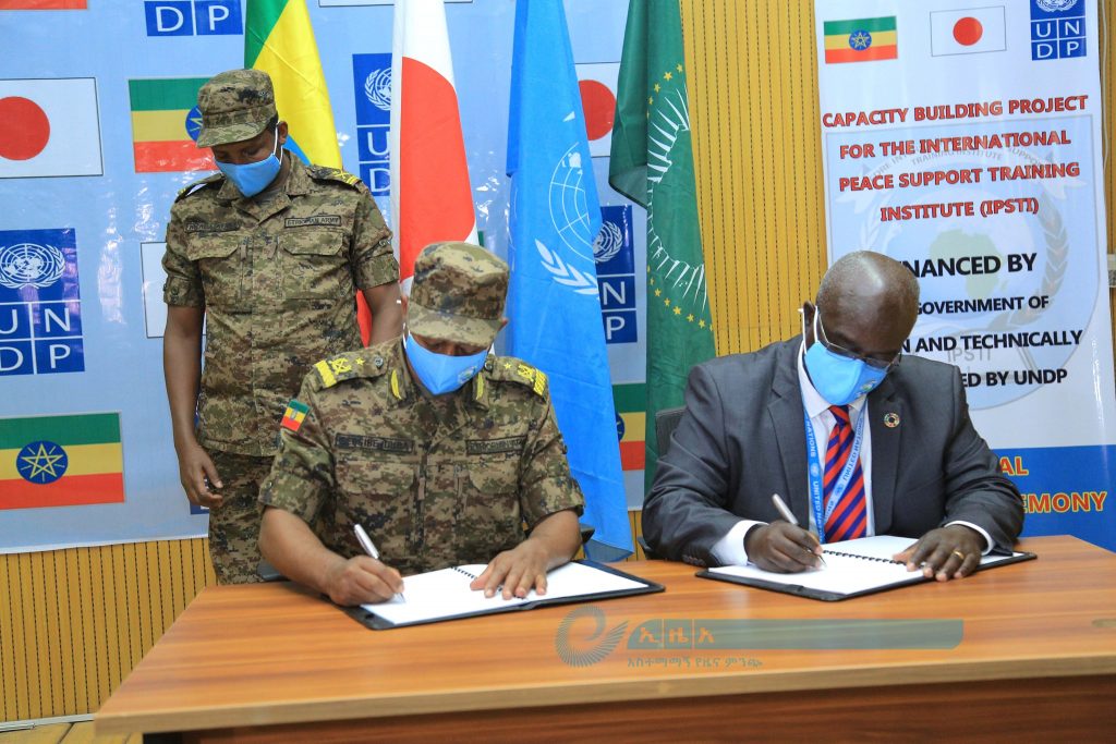በመከላከያ ሚኒስቴር የዓለም አቀፉ የሠላም ማስከበር ማሰልጠኛ ተቋም ኃላፊ ብርጋዴር ጄኔራል ሰብስቤ ዱባና የመንግሥታቱ ድርጅት የልማት መርኃ ግብር ምክትል የኢትዮጵያ ተወካይ ሴሌኦፋስ ቶሮሪ የድጋፍ ሥምምነቱን ተፈራርመዋል።
