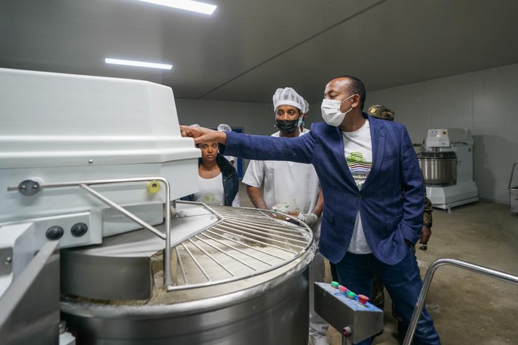 አዲስ አበባ ፣ ሰኔ 14 ፣ 2013 (ኤፍ ቢ ሲ) ጠቅላይ ሚኒስትር ዐቢይ አሕመድ በቀዳሚዊት እመቤት ዝናሽ ታያቸው እየተገነባ ያለውን የዳቦ ፋብሪካ አጠቃላይ ሂደት ጎበኙ፡፡