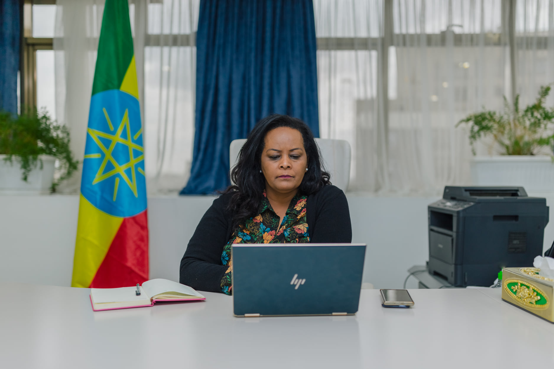በሰላም ሚኒስቴር የሕግ ማስከበር ዘርፍ ሚኒስትር ዴዔታ ፍሬዓለም ሽባባው በውይይቱ ላይ በመሳተፍ ላይ ይገኛሉ።
