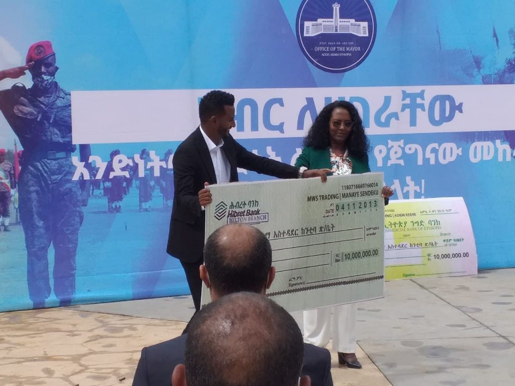 በርክክብ ስነ ስርዓቱ ኤም ደብሊው ኤስ (MWS) እና ሆራ ትሬዲንግ እያንዳንዳቸው 10 ሚሊየን ብር ለመከላከያ፣ 5 ሚሊየን ብር ደግሞ ለተቸገሩ ወገኖች ምገባ የሚውል ድጋፍ አስረክበዋል።
