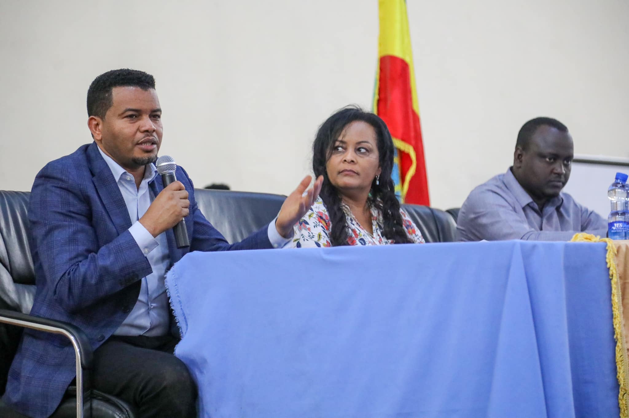 የማዕድን እና ነዳጅ ሚኒስትር አቶ ታከለ ኡማ ከሰላም ሚኒስትር ዴኤታ ወይዘሮ ፍሬዓለም ሽባባው እና ከቤኒሻንጉል ጉሙዝ ክልል ርእስ መስተዳድር አቶ አሻድሊ ሃሰን ጋር በመሆን በክልሉ በማዕድን ዘርፍ ከተሰማሩ ባለሃብቶች ጋር ውይይት አካሂደዋል።