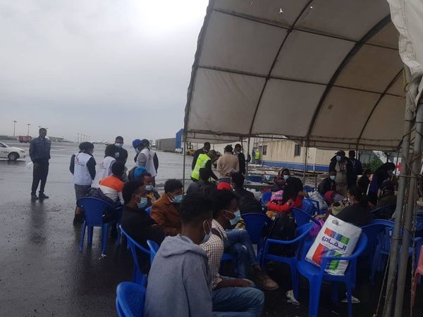 ተመላሾቹ ቦሌ ዓለም አቀፍ አውሮፕላን ማረፊያ ሲደርሱ በውጭ ጉዳይ ሚኒስቴር የቆንስላ ጉዳዮች ዳይሬክቶሬት ጄነራል ተወካይ አቀባበል አድርገውላቸዋል።