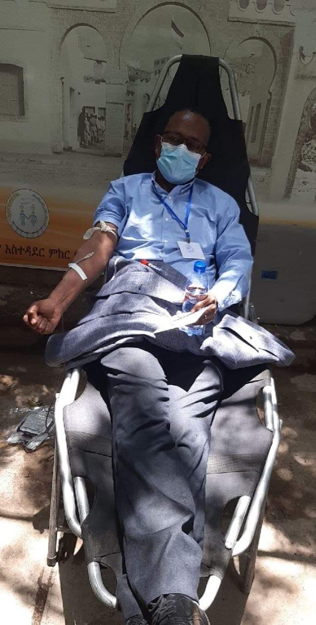 የሳይንስና ከፍተኛ ትምህርት ሚኒስትር ዲኤታ ፕ/ር አፈወርቅ ካሱን ጨምሮ ሌሎች ተሳታፊዎች ናቸው “ደማችን ደሙን ለሚያፈስልን የመከላከያ ሠራዊታችን” በሚል ነው በፍቃደኝነት የደም የለገሱት።