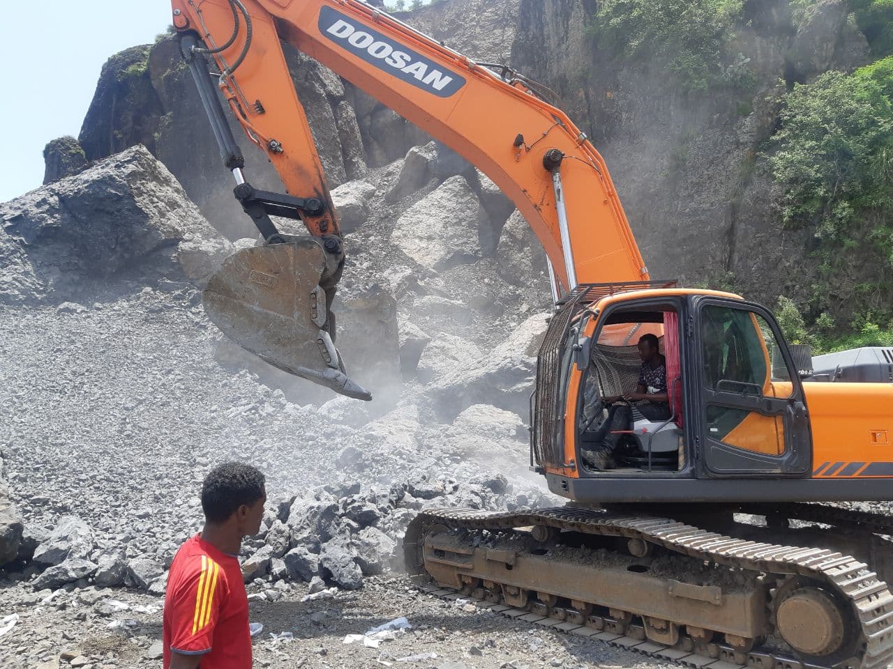 መንገዱን የዘጋውን ቋጥኝ ለማንሳት በአማካይ በአንድ ጊዜ እስከ 20 ድማሚት በመጠቀም 10 ጊዜ በላይ ድማሚት በማፈንዳት መንገዱን የመክፈት ስራ እየተሰራ ነው፡፡