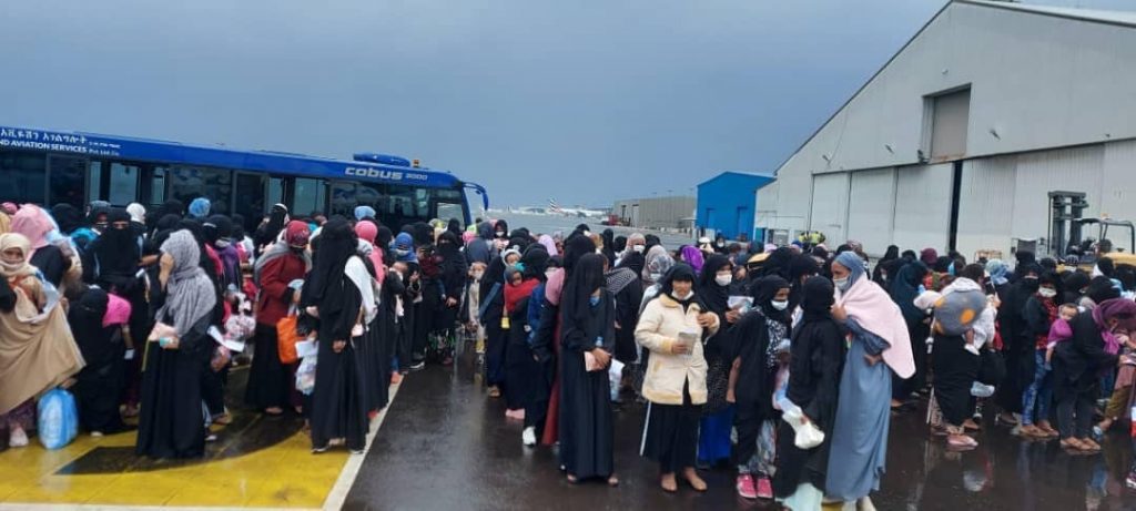 ተመላሾቹ ቦሌ ዓለም አቀፍ አውሮፕላን ማረፊያ ሲደርሱ በውጭ ጉዳይ ሚኒስቴር የቆንስላ ጉዳዮች ዳይሬክቶሬት ጄነራል ተወካይ አቀባበል አድርገውላቸዋል።