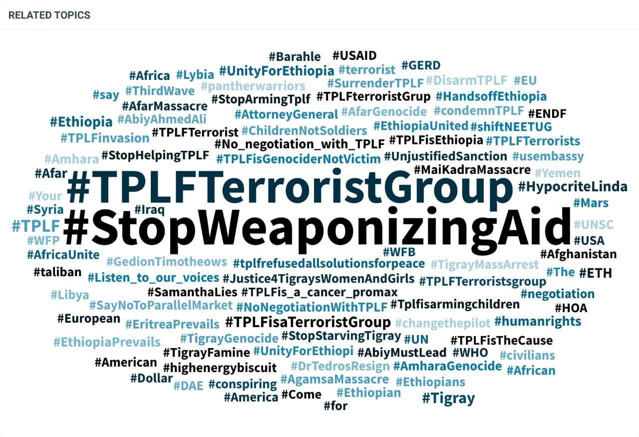 ”በእርዳታ ሽፋን የሚደረግ የጦር መሳሪያ ማስታጠቅ ይቁም!” የተሰኘው መፈክር ትላንት ምሽት ጀምሮ እስከ ዛሬ ረፋድ ብቻ 105 ሺህ ትዊቶች ተሰራጭውበታል።