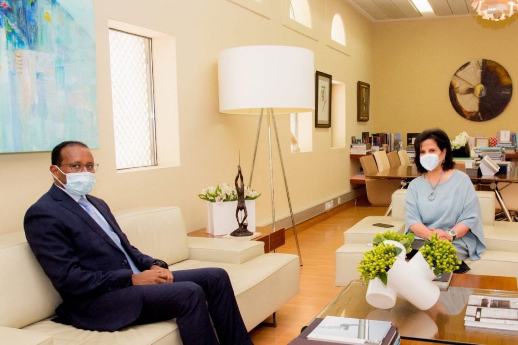 አዲስ አበባ፣ ነሐሴ 18፣ 2013 (ኤፍ ቢ ሲ) በባህሬን የኢትዮጵያ አምባሳደር ጀማል በክር ከባህሬን የባህልና ቅርስ ባለስልጣን ፕሬዚዳንት ከሆኑት ሜይ ቢንት መሐመድ አልከሊፋ ጋር ተወያይተዋል።