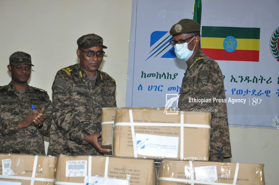 የኮርፖሬሽኑ ዋና ዳይሬክተር ሜጀር ጄኔራል አህመድ ሃምዛ ወታደራዊ ትጥቁን ለመከላከያ ህብረት ሎጂስቲክስ ዋና መምሪያ ሃላፊ ተወካይና የመከላከያ ድጋፍ አሰባሳቢ ኮሚቴ ሰብሳቢ ብርጋዴር ጄኔራል አስረስ አያሌው አስረክበዋል።
