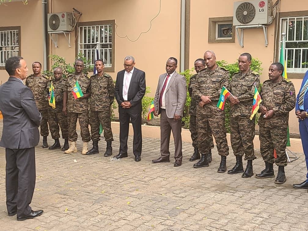 በሥነ-ሥርዓቱ ላይ የተገኙት አምባሳደር ነቢል ማህዲ፥ ከ20 ዓመታት በላይ ከቤቱና ከቤተሰቡ ተነጥሎ ጠላት ሲመጣ የሚመክት፣ አዝመራ ሲደርስ የሚያጭድ፣ ት/ቤትና የጤና ተቋማትን በራሱ ገቢ ይገነባ የነበረን ሠራዊት ሰዋዊ ባልሆነ መልኩ በአሸባሪው ህወሓት የተሰጠው ምላሽ በታሪክ የማይዘነጋ መሆኑን ገልጸው፥ የተከፈለው መስዋዕትነት ዋና ዓላማ የኢትዮጵያን ሉአላዊነት ለማስከበር ነው ብለዋል።