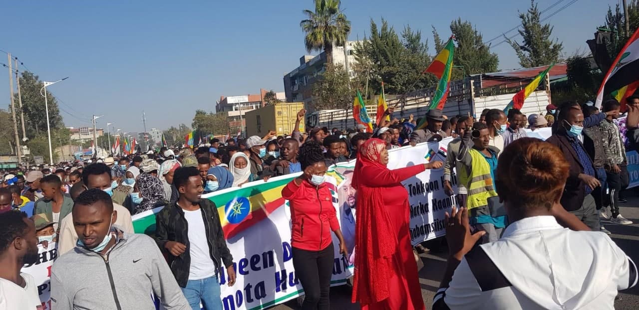 በሰልፉ ወያኔ የኢትዮጵያውያን ሁሉ ጠላት ናት፣ የሽብር ቡድኑን ህወሓት ማስወገድ የኢትዮጵያን ህዝብ ህልውና ማረጋገጥ ነው፣ የሸኔና የወያኔ የጭካኔ እርምጃዎችን አጥብቀን እናወግዛለን የሚሉ መፈክሮች ተደምጠዋል፡፡