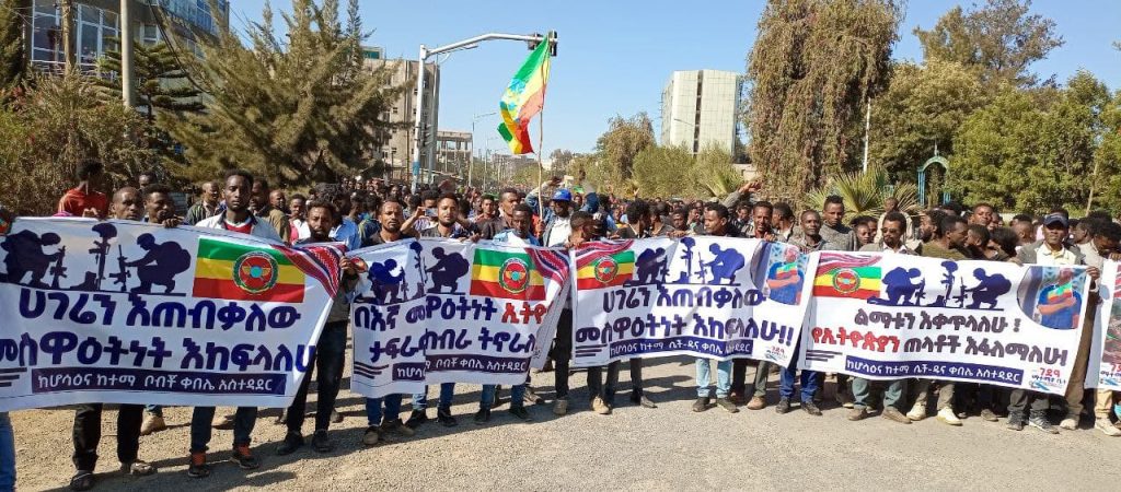 በሰልፉ እኛ እያለን አሸባሪውና ወራሪው ቡድን አገራችንን አይበትንም ብለዋል ነዋሪዎቹ።