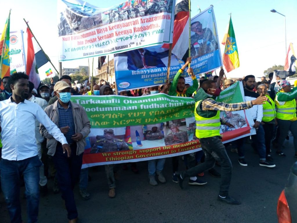 በአርሲ ዞን አሰላ ከተማ ከ 8ቱም ቀበሌዎች የተወጣጡ በሺዎች የሚቆጠሩ ዜጎችም እኔም ለሀገሬ ወታደር ነኝ ፣ ኢትዮጵያን ለማዳን እዘምታለሁ በሚሉ መልዕክቶች ሰልፉ ላይ ታድመዋል፡፡