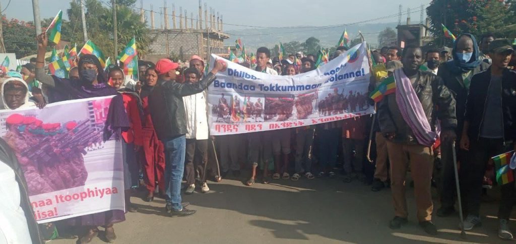 ‘የአሸባሪዎቹን ሀገር የማጥፋት የጭካኔ ድርጊቶችን አንድ ሆነን እንመክታለን!፤ ኢትዮጵያ ለጠላት ተንበርክካ አታውቅም፤ ሸኔና ወያኔ የኦሮሞ ጠላቶች ናቸው፤ የኦሮሞ ህዝብ ለወያኔ እጁን አይሰጥም፤ ወያኔና ሸኔ የቀሬና ቄሮ ዋና ጠላቶች ናቸው’ የሚሉ መፈክሮችን በማስተጋባት ሰልፈኞቹ ህወሃትና ሸኔን አውግዘዋል፡፡