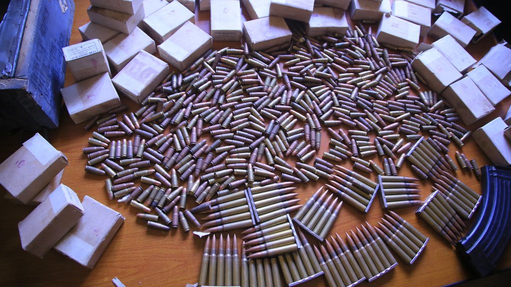 በቤተ ክህነቱ ግቢ በሚገኝ የንብረት ግምጃ ቤት በሚገኝ የፅህፈት እና የፅዳት እቃዎች ማስቀመጫ ውስጥ በተደረገው ብርበራ የተገኙት 1 ሺህ 363 የብሬን እና 493 የሽጉጥ ጥይቶች ናቸው፡፡