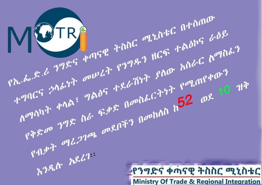የንግድ ሥራ ፈቃድ ለማውጣት ብቃት ማረጋገጫ እንደ ቅድመ መስፈርት ይጠቀምባቸው የነበሩ 52 መደቦችን በመከለስ ወደ 10 ዝቅ እንዲሉ ተደርጓል ነው የተባለው፡፡