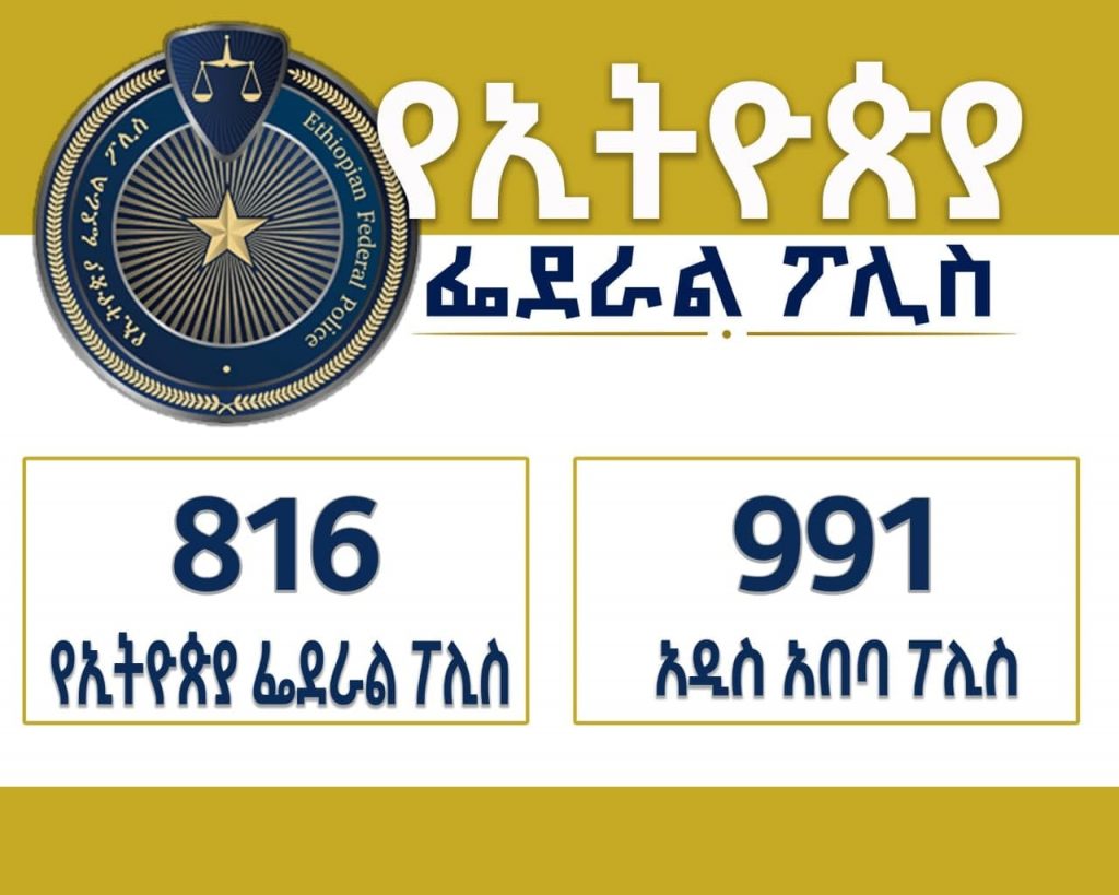 በዚህም ከወቅታዊ ሀገራዊ የፀጥታ ሁኔታ ጋር በተገናኘ መረጃና ጥቆማ ለፖሊስ ለማድረስ እና የፖሊስ አገልግሎት ቢያስፈልግ ከታች በተጠቀሱት ነፃ የስልክ መስመሮች ላይ በመደወል ሀያ አራት ሰዓት አገልግሎት ማግኘት እንደሚቻል ተገልጿል፡፡