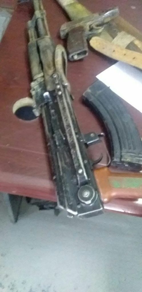 1) ታጣፊ ከላሽ ብዛት 1 የውግ ቁጥር 24096 የጥይት ብዛት 114 እና 4 ካዝና