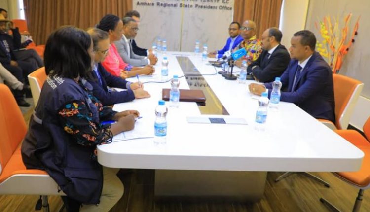 Addis Ababa, May 9, 2023 (FBC) – Chief Administrator of the Amhara Regional State, Yilkal Kefale (PhD), has conferred with officials of international relief organizations.