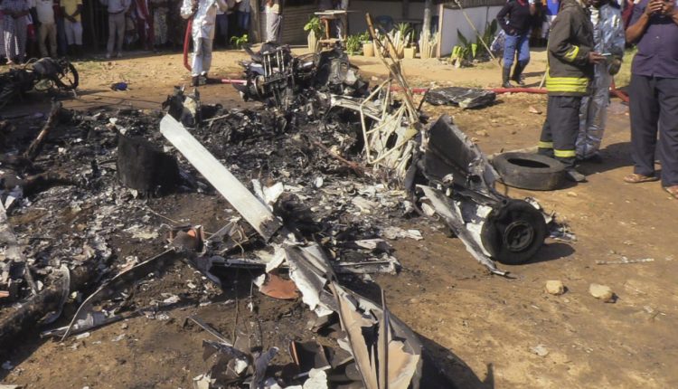 Authorities identified the victims as a motorcycle taxi rider who was burned to death and two others struck by parts of the disintegrating aircraft.