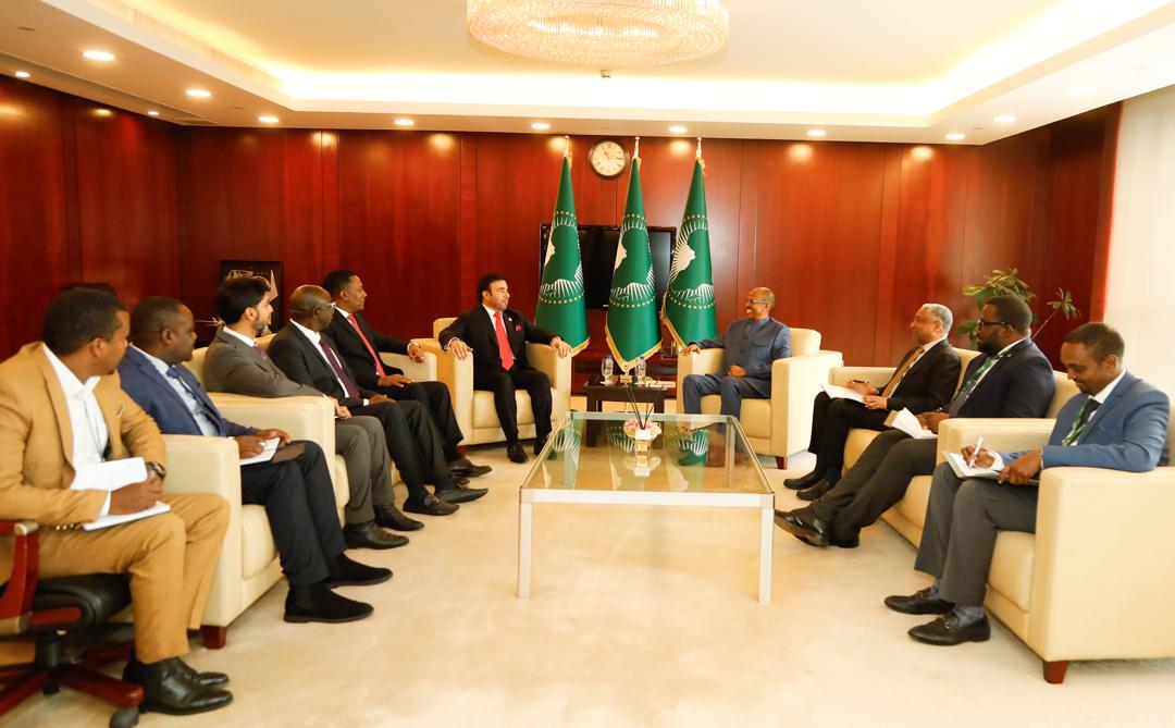 The pledge was made during a high-level meeting today between AU Commission Chairperson Mahmoud Ali Youssouf and INTERPOL President Dr. Ahmed Naser Al-Raisi at AU Headquarters in Addis Ababa.