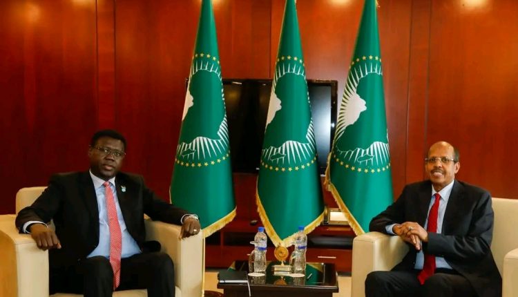 Addis Ababa, April 17, 2025 (FMC) — Chairperson of the AU Commission (AUC), Mahmoud Ali Youssouf had a fruitful exchange with Monday Semaya K. Kumba, Minister of Foreign Affairs and International Cooperation of South Sudan.