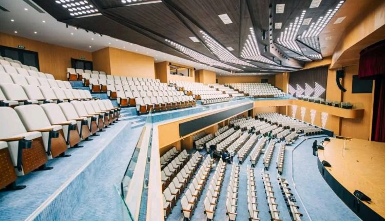 The newly inaugurated theater complex features a main theater with a seating capacity of 1,200, housed within two 14-storey blocks, along with two cinema halls and various specialized service facilities.