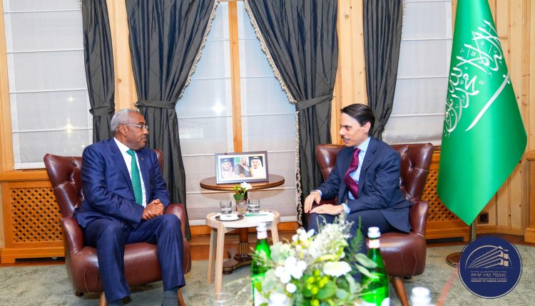 Addis Ababa, January 19, 2024 (FBC) – Deputy Prime Minister and Minister of Foreign Affairs, Mr. Demeke Mekonnen, met with the Foreign Minister of the Kingdom of Saudi Arabia, Prince Faisal bin Farhan Al Saud, on the sidelines of the World Economic Forum annual meeting in Davos, Switzerland.
