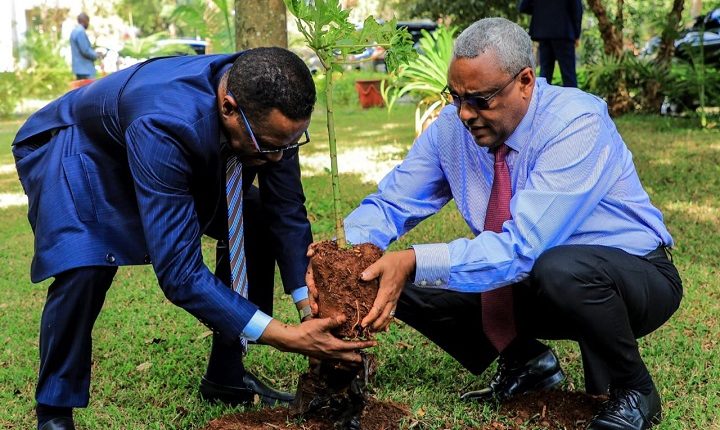 DPM & FM Demeke Plants Tree Seedlings in Ethiopian Embassy, Kenya