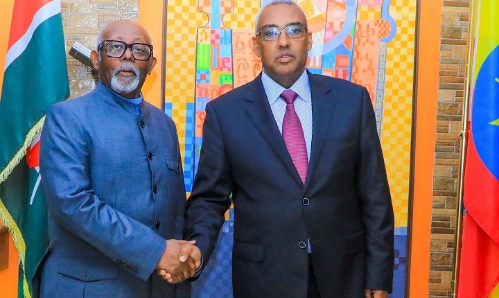 Addis Ababa, July 12, 2023 (FBC) – Deputy Prime Minister and Foreign Minister Demeke Mekonnen this afternoon held a bilateral discussion with Cameroonian Foreign Minister Lejeune Mbella at the Ethiopian Embassy in Kenya.
