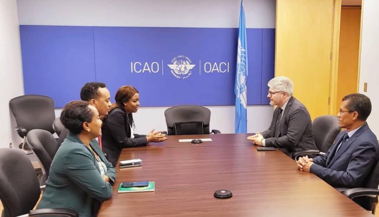 A delegation led by Ms. Selamawit Dawit, the Director General of ICS, met with Juan Carlos Salazar, the Director General of the International Civil Aviation Organization, to discuss the implementation details.