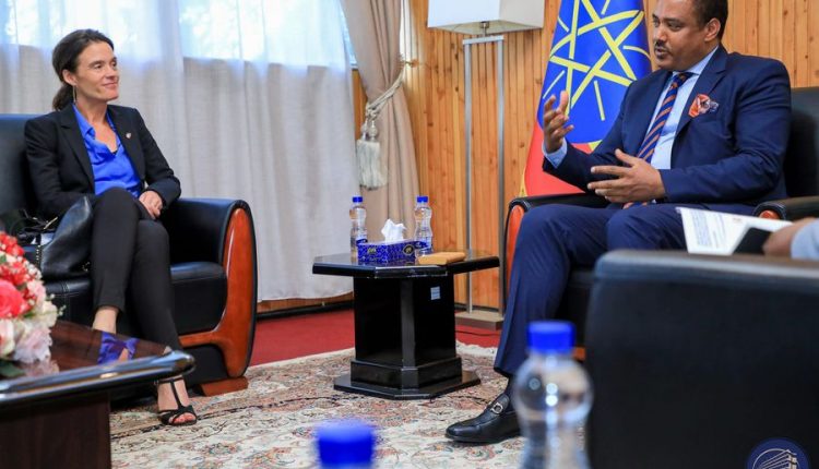 Addis Ababa, 6 March 2024 (FBC) – State Minister for Foreign Affairs, Ambassador Mesganu Arga received at his office the Ambassador of Denmark to Ethiopia, Kira Smith Sindbjerg.